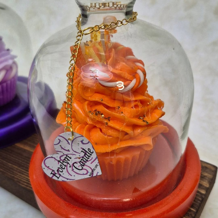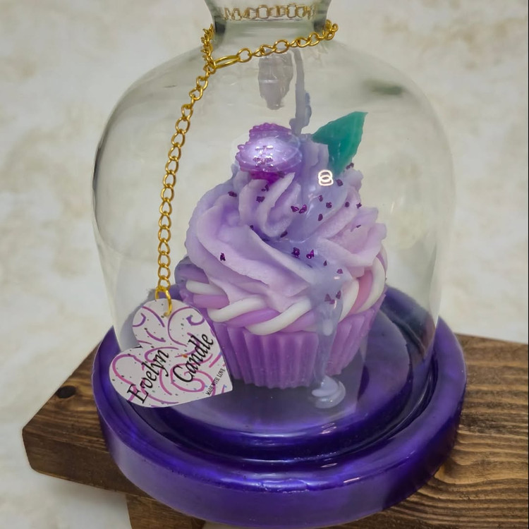🧁شمع کاپکیکی معطر همراه با باکس گلس اختصاصی💜🧡💚